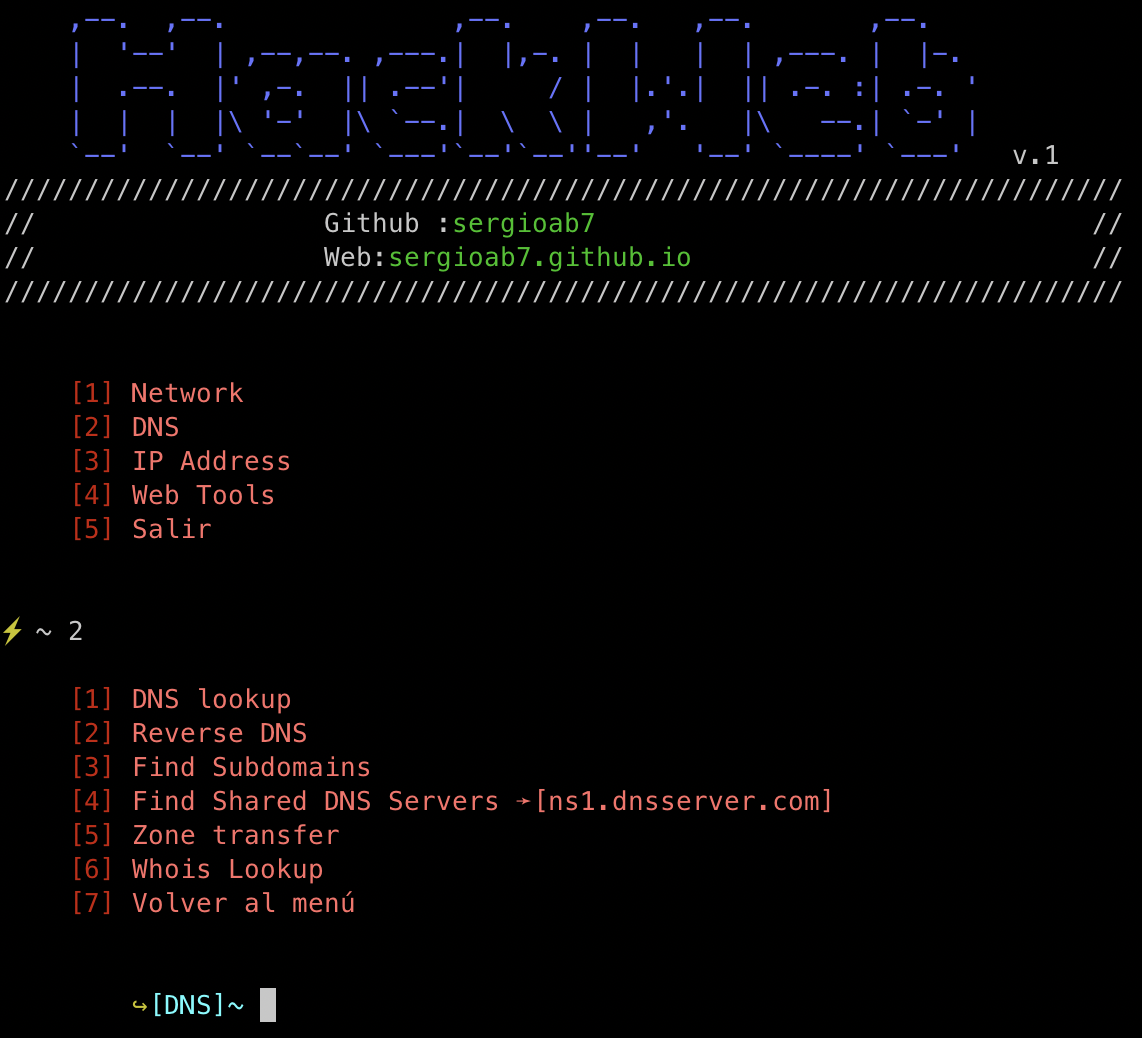 La herramienta está separada en diferentes módulos: Network,DNS,IP y Web tools